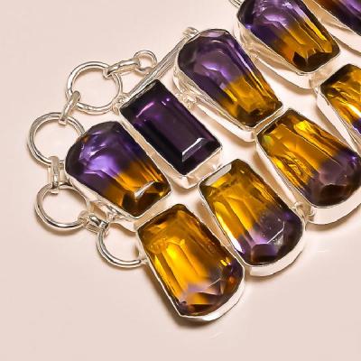 AME-345 - Superbe BRACELET - 5 AMETRINES de Bolivie en Argent 925 - 180 carats - 36 g