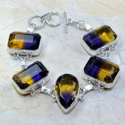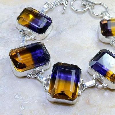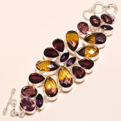 AME-350 - Superbe BRACELET - 5 AMETRINES de Bolivie en Argent 925 - 180 carats - 36 g