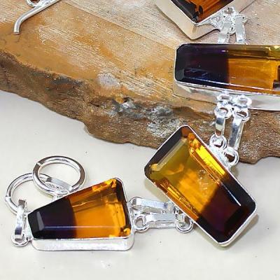 AME-144 - Rare et Original Pendentif 3 AMETRINES - LEMONTRINE Argent 925 - 160 carats - 32 gr