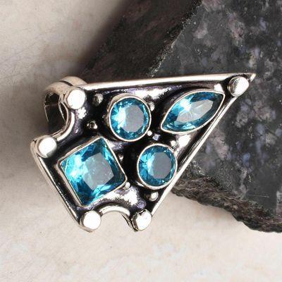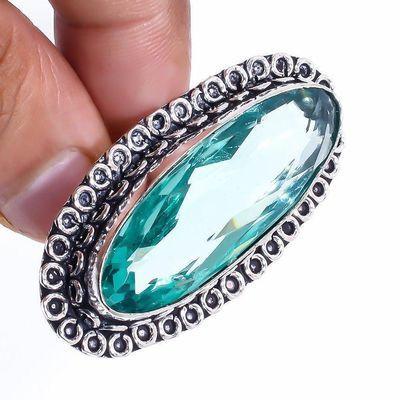 AM-3345 - Magnifique BAGUE T 57 Anneau en argent 925 et AIGUE MARINE 15x25mm - 80 carats - 16 gr