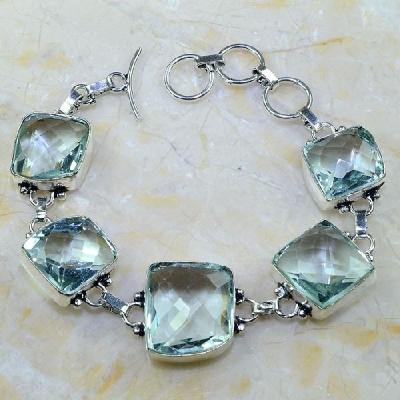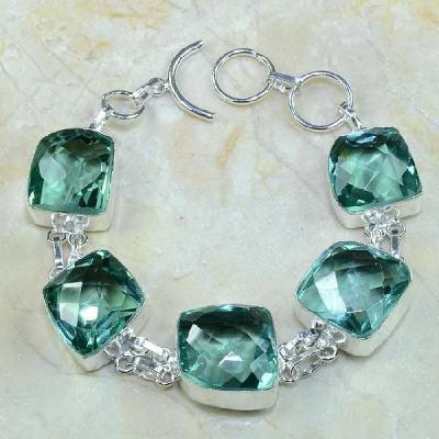 AM-3070 - Joli BRACELET en AIGUES MARINES bleues 18 x 18 mm - monture argent 925 - 215 carats 43 gr