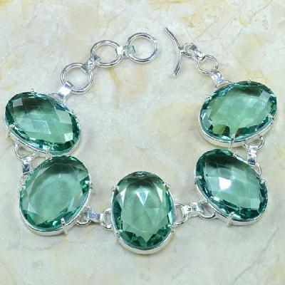 AM-3073 - Joli BRACELET 5 AIGUES MARINES bleues 15 x 25 mm - monture argent 925 - 250 carats 50 gr