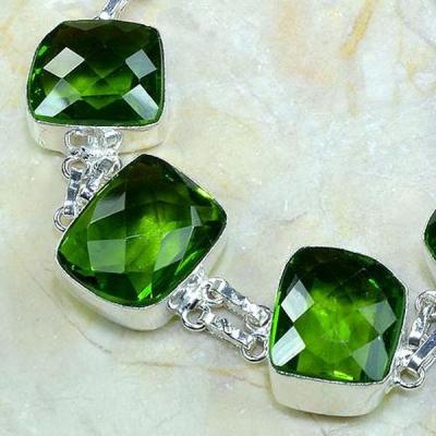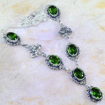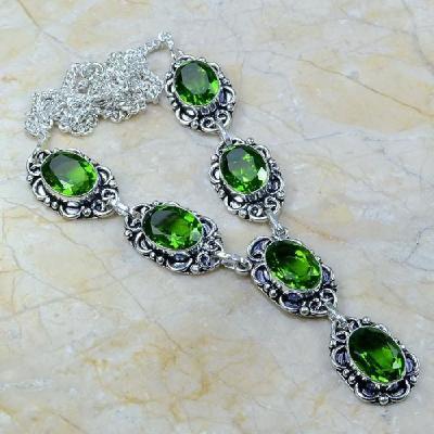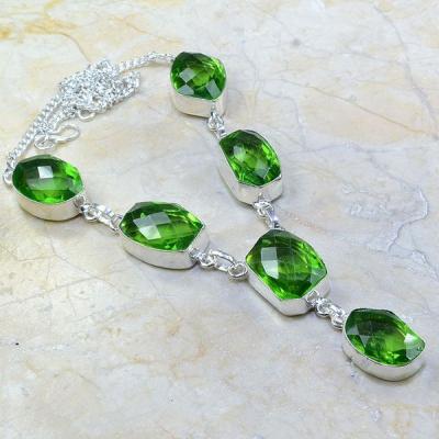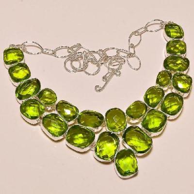 PER-203 - Magnifique COLLIER QUARTZ vert et PERIDOT, SAUTOIR, PARURE Ag 925 - 585 carats - 117 gr