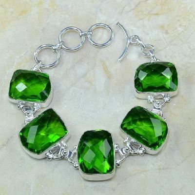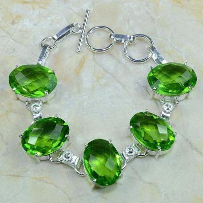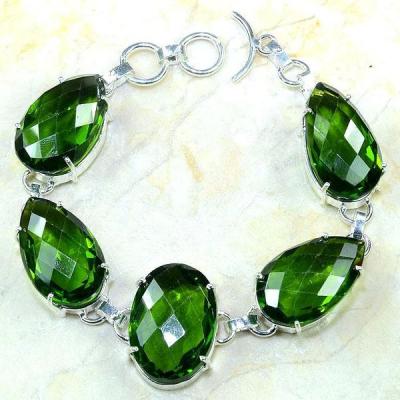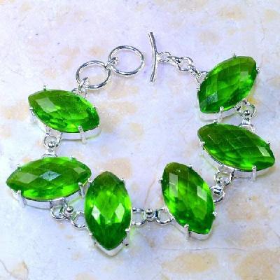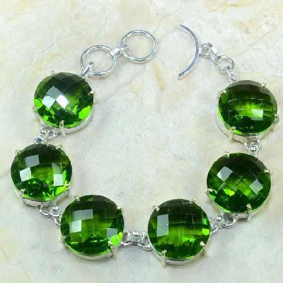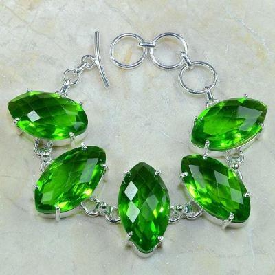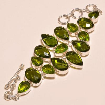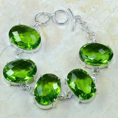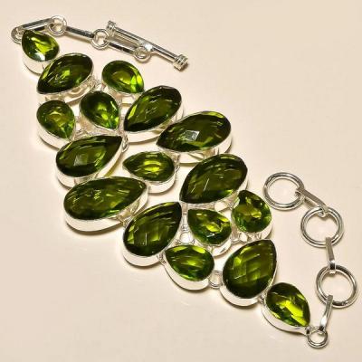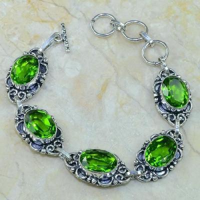 PER-003 - Magnifique BRACELET en argent 925 et 5 PERIDOTS - 107,5 carats - 21,5 gr