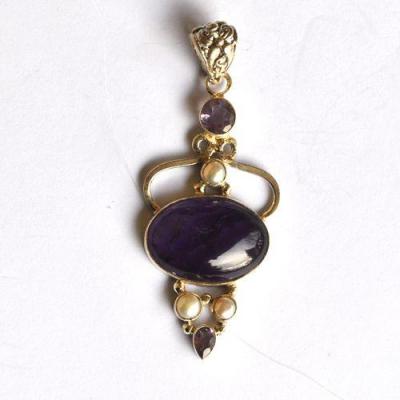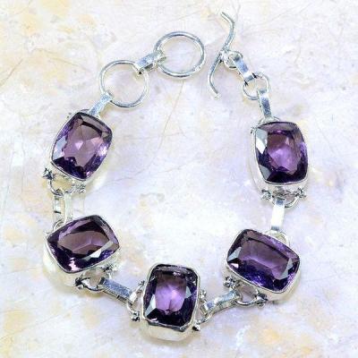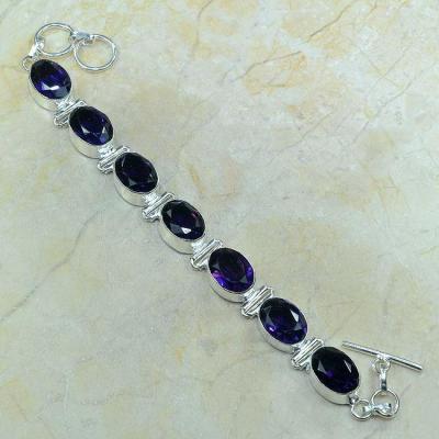 AM-1215 - Magnifique BRACELET en argent 925 AMETHYSTES et TOPAZE bleue - 130 carats - 26 gr
