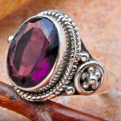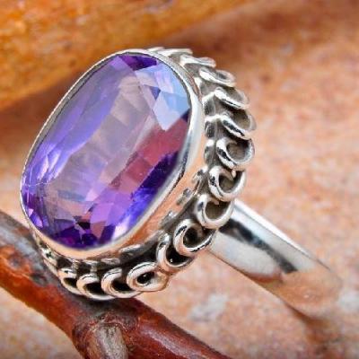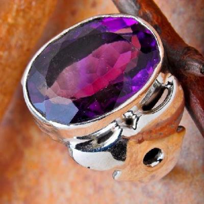 AM-1172 - Jolie BAGUE Anneau T59 argent 925 et AMETHYSTES Pourpres - 60 carats - 12 gr