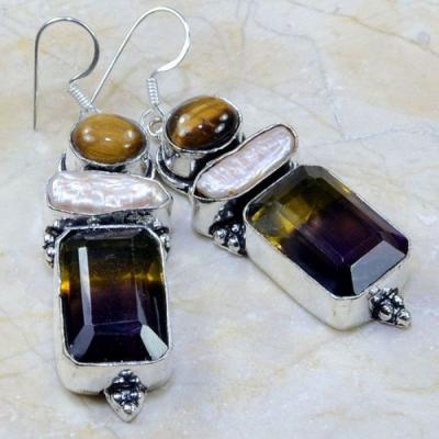 AME-916- longues Boucles d'Oreilles AMETRINE - AMETHYSTE Argent 925 - 70 mm - 153 carats - 30 gr