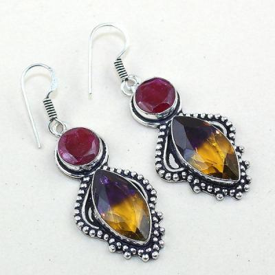 AME-560 - Boucles d'Oreilles AMETRINE et AMETHYSTE en Argent 925 - 60 mm - 105 carats - 21 gr