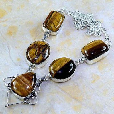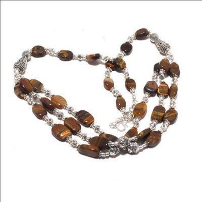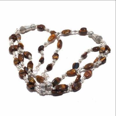 OT-4038 - Joli COLLIER de perles OEIL DE TIGRE de 6 à 15 mm - fermoir argent 925 - 48 g 240 carats