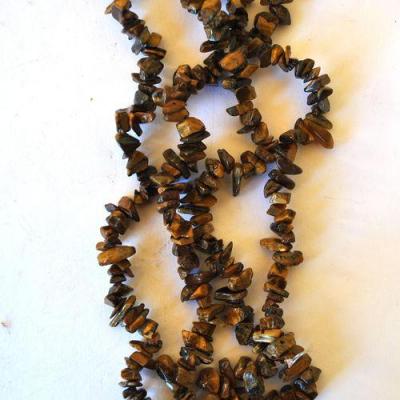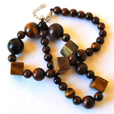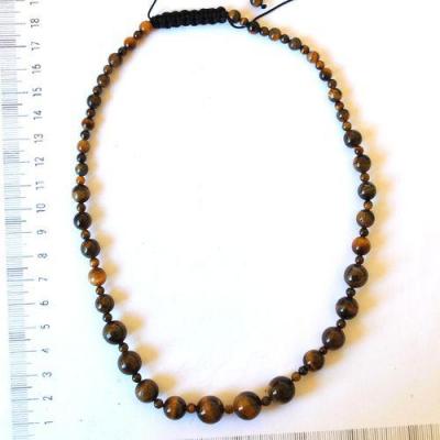 OT-4018 - Joli COLLIER 1 rang de perles OEIL DE TIGRE brun de 4 à 12 mm - 37 g 185 carats
