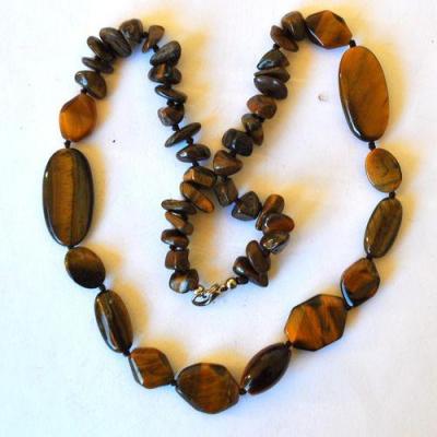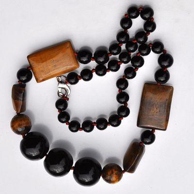 OT-4049 - Joli COLLIER 1 rang de perles OEIL DE TIGRE brun de 6 à 15 mm - 73 g 365 carats
