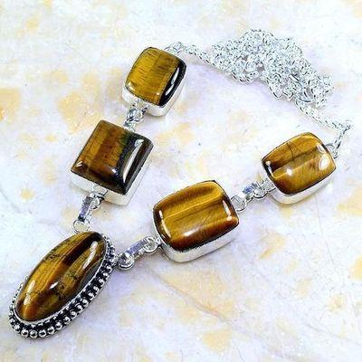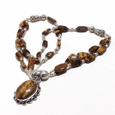OT-7999- Beau COLLIER de perles OEIL DE TIGRE 6 et 15 mm et JADE vert 15 x 20 mm - 65 g 325 carats