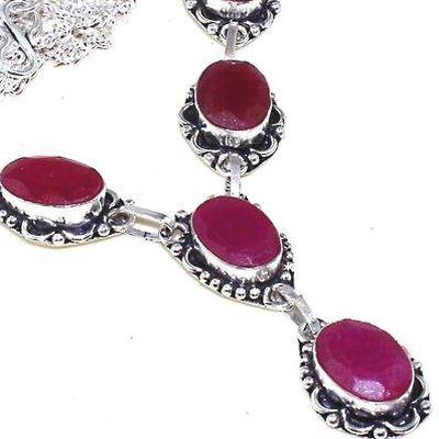 RUB-381 - COLLIER, parure sautoir 6 gros RUBIS du CACHEMIRE - Argent 925 - 275 carats - 55 gr