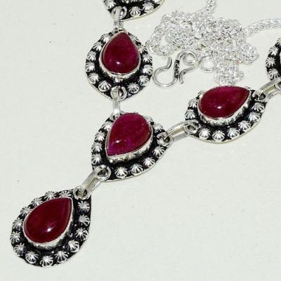RUB-320 - COLLIER, PARURE, SAUTOIR en RUBIS du cachemire et argent 925 - 190 carats - 38 gr