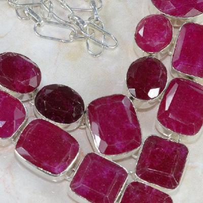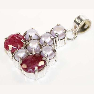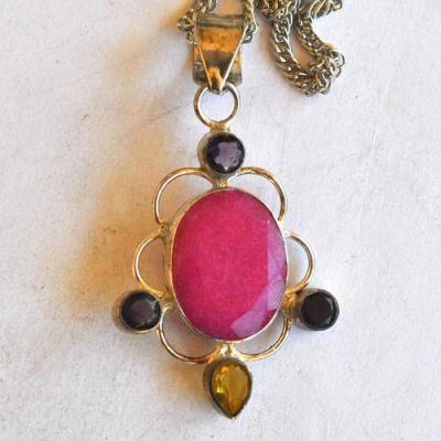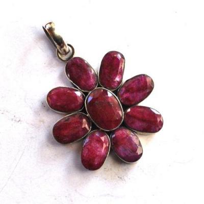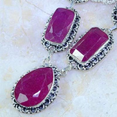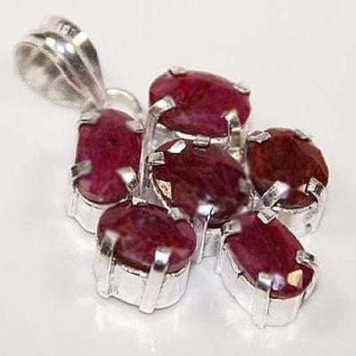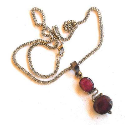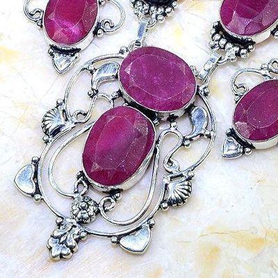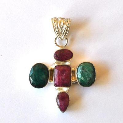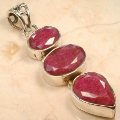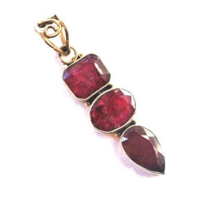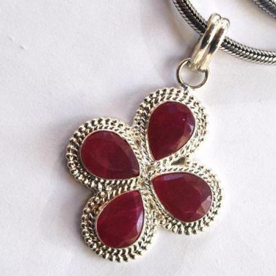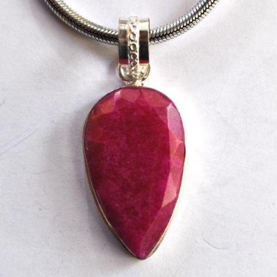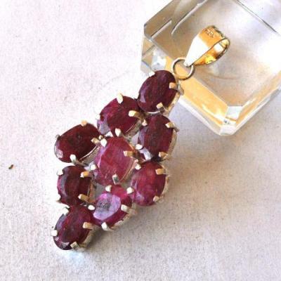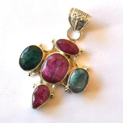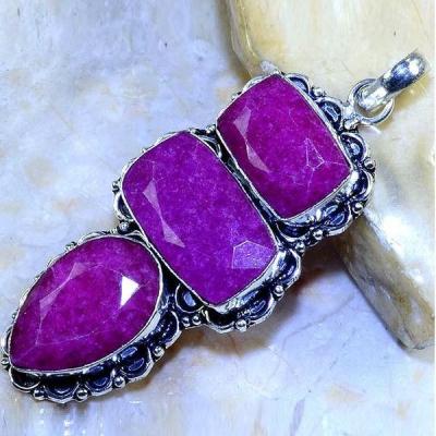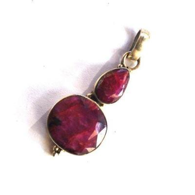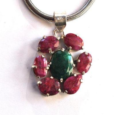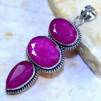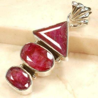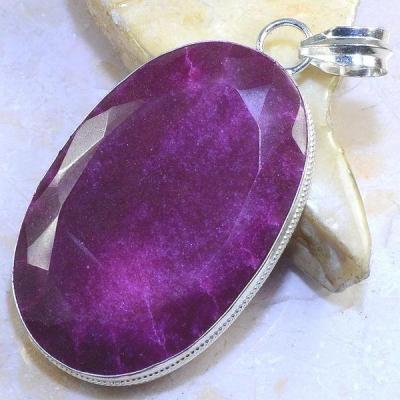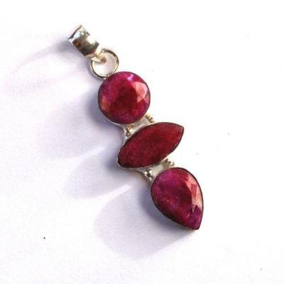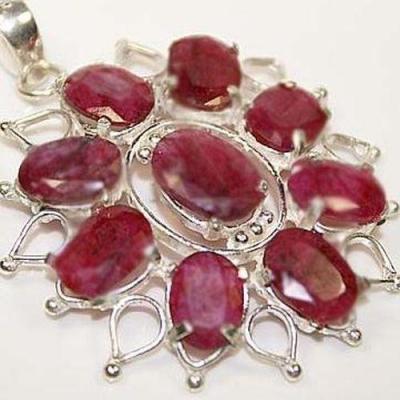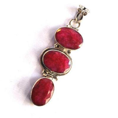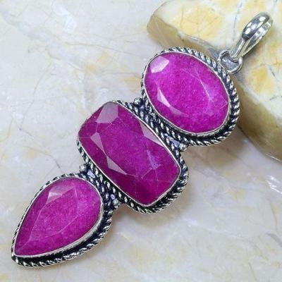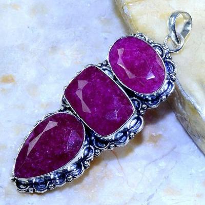 RUB-497 - Grand PENDENTIF PENDANT 80 mm 2 RUBIS du CACHEMIRE - Argent 925 - 120 carats 24 g