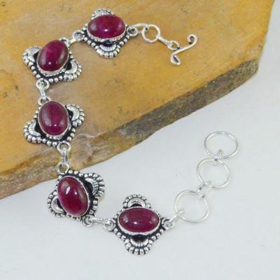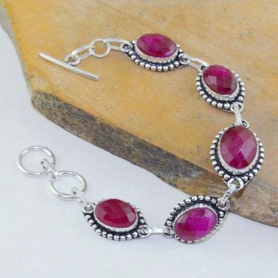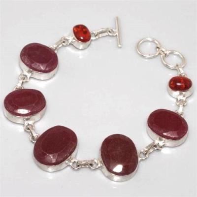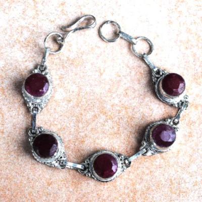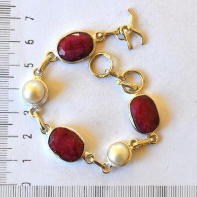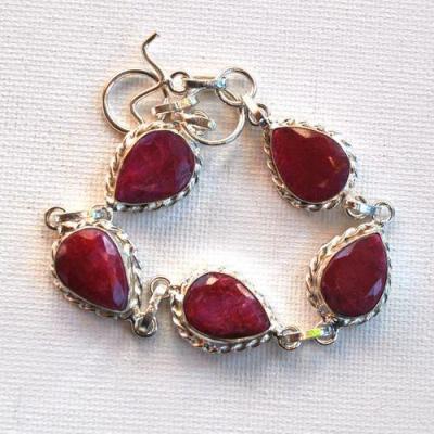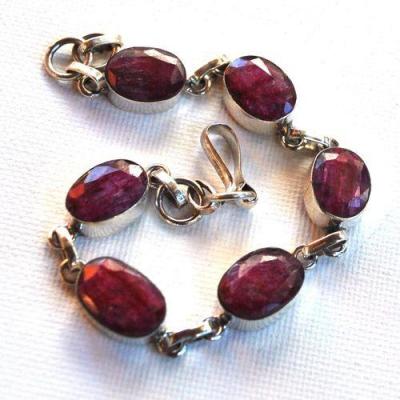RUB-290 - BRACELET avec 5 RUBIS du CACHEMIRE - 10 x 12 mm monture Argent 925 - 75 carats - 15 gr