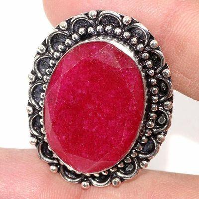 RUB-366 - Belle BAGUE en RUBIS du CACHEMIRE - T 54 - Argent 925 - 75 carats - 15 gr