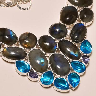 LB-0556 - Magnifique et Enorme COLLIER PARURE en LABRADORITE et Argent 925 - 770 carats 154 gr