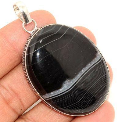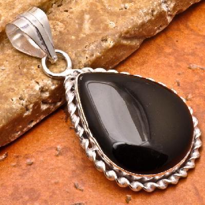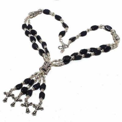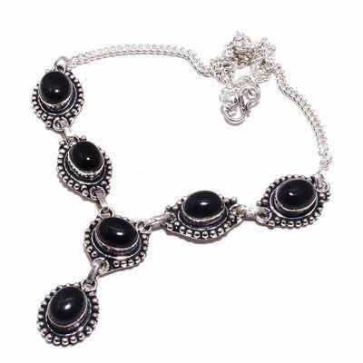 ON-0360 - Joli SAUTOIR, COLLIER, PARURE en ONYX Noir et monture argent 925 - 160 carats - 32 gr