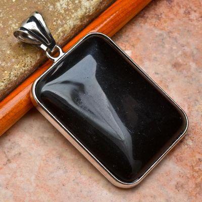 ON-4315 - Belle BAGUE T 55 cabochon en ONYX NOIR 12 x 16 mm - Bijou en argent 925 - 45 carats - 9 gr