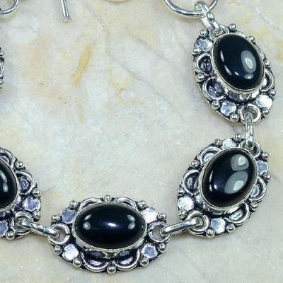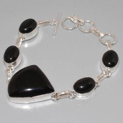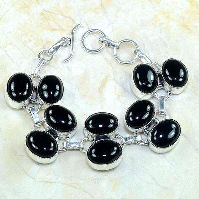 ON-0281 - Joli BRACELET en ONYX Noir et monture argent 925 - 210 carats - 42 gr