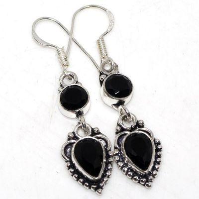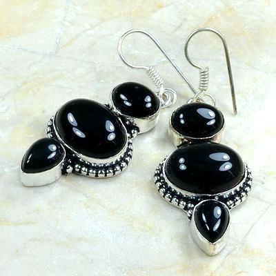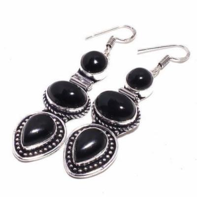 ON-0340 Jolies BOUCLES PENDANTS D'OREILLES 60 mm ONYX noir argent 925 - 70 carats - 14 gr