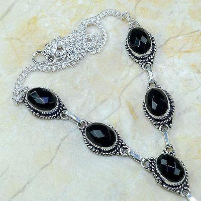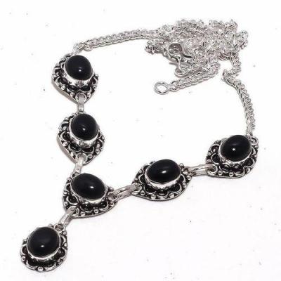 ON-0301 - Joli SAUTOIR, COLLIER, PARURE en ONYX Noir et monture argent 925 - 145 carats - 29 gr