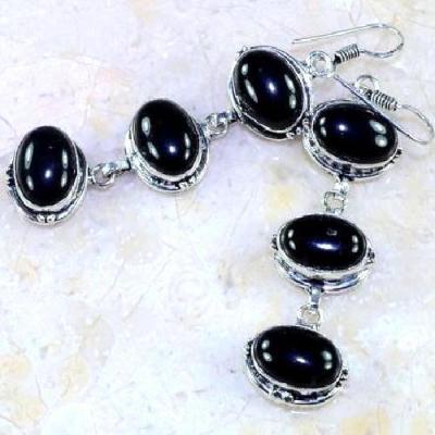 ON-0396 - PARURE assortie : COLLIER + BOUCLES OREILLES en ONYX Noir argent 925 - 200 carats - 40 gr