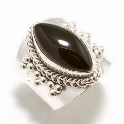 ON-6511 - Belle BAGUE T 54 cabochon en ONYX NOIR 10 mm - Bijou en argent 925 - 35 carats - 7 gr