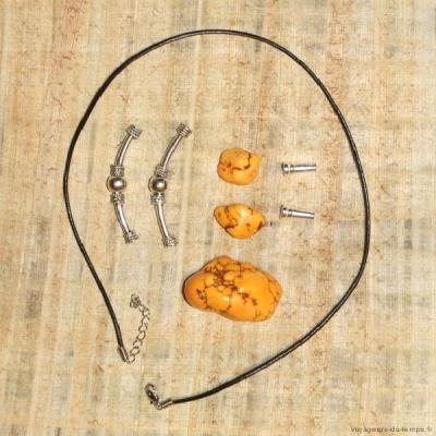 KIT-001 - KIT COLLIER ETHNIQUE TURQUOISE JAUNE D' OR et ARGENT TIBETAIN - LOISIRS CREATIFS