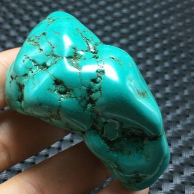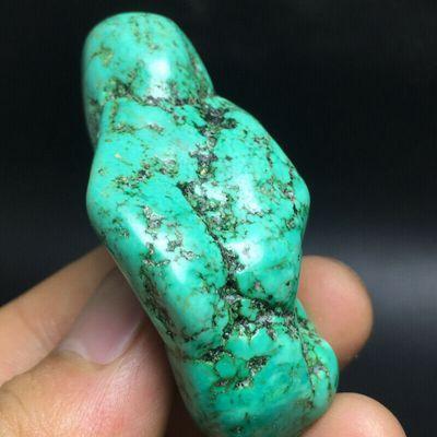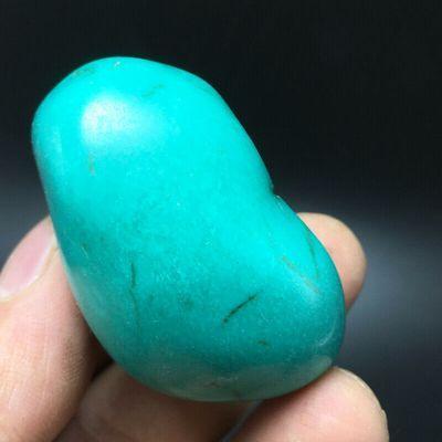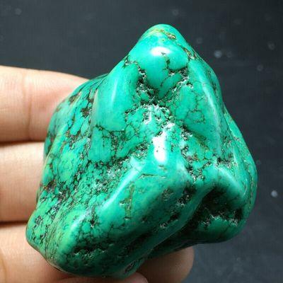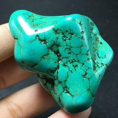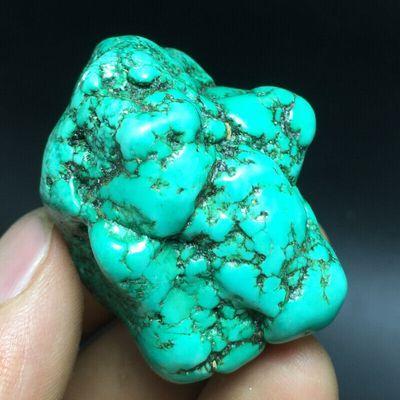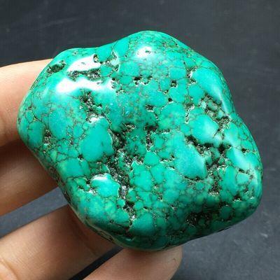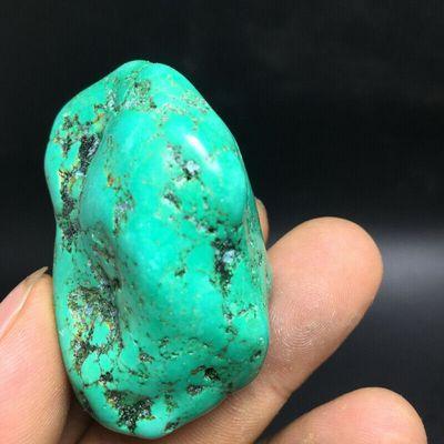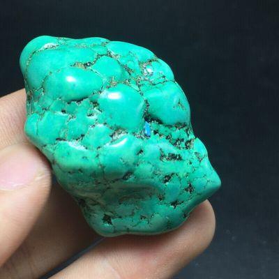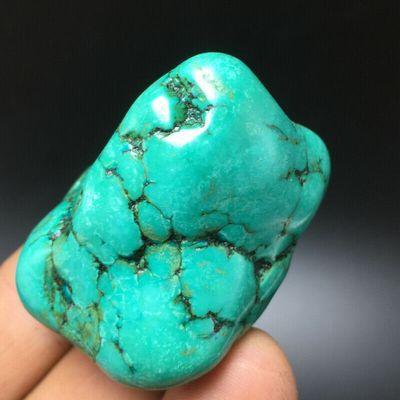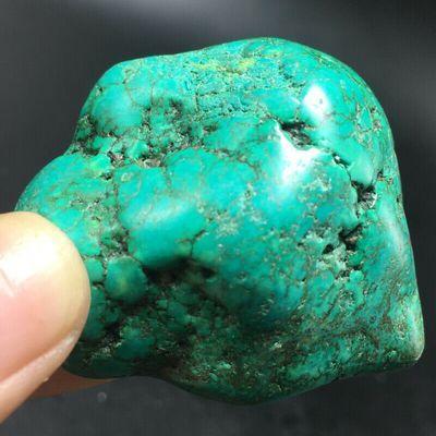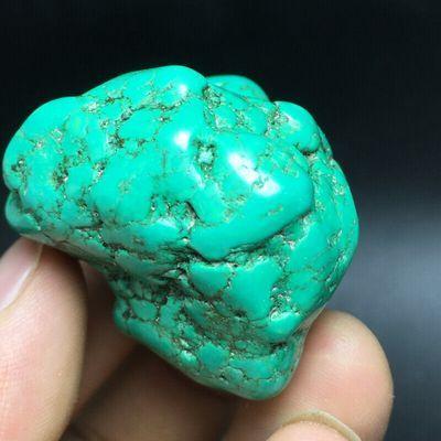 TQA-096 -Grosse BAGUE T 61 Cabochon 28 mm en TURQUOISE verte sur argent 925 - 55 carats - 11 gr