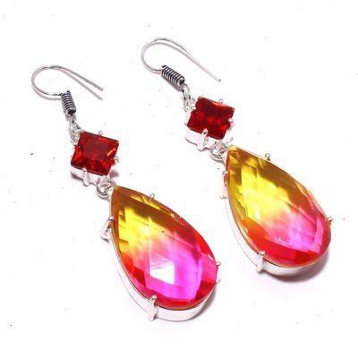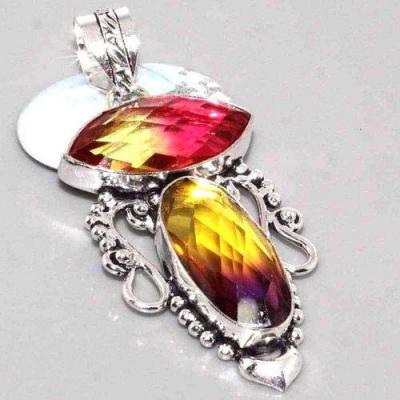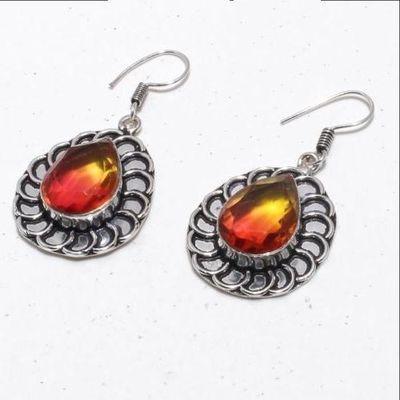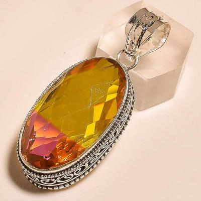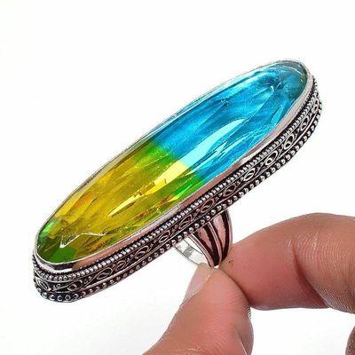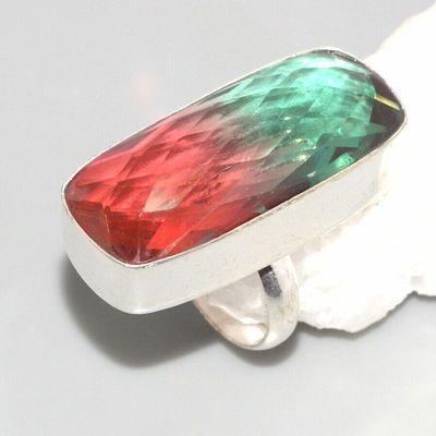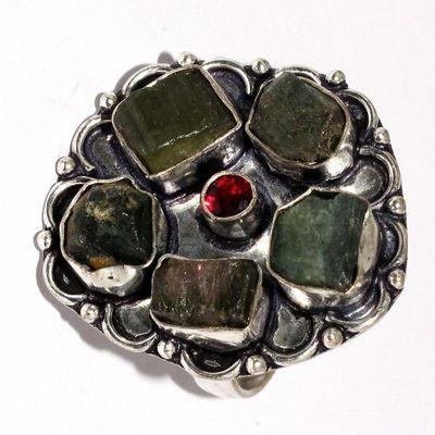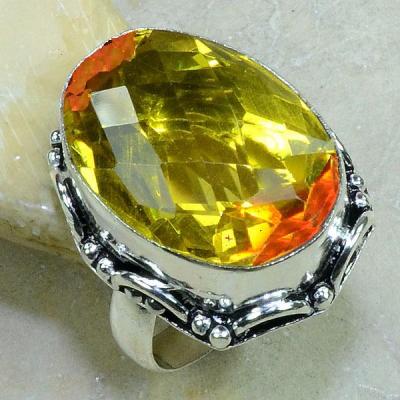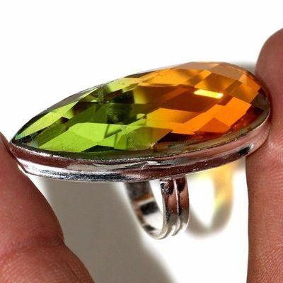 TRM-039 - BAGUE T 61 avec Grosse TOURMALINE LEMONTRINE Orangée Argent 925 - 73 carats 13.4 gr